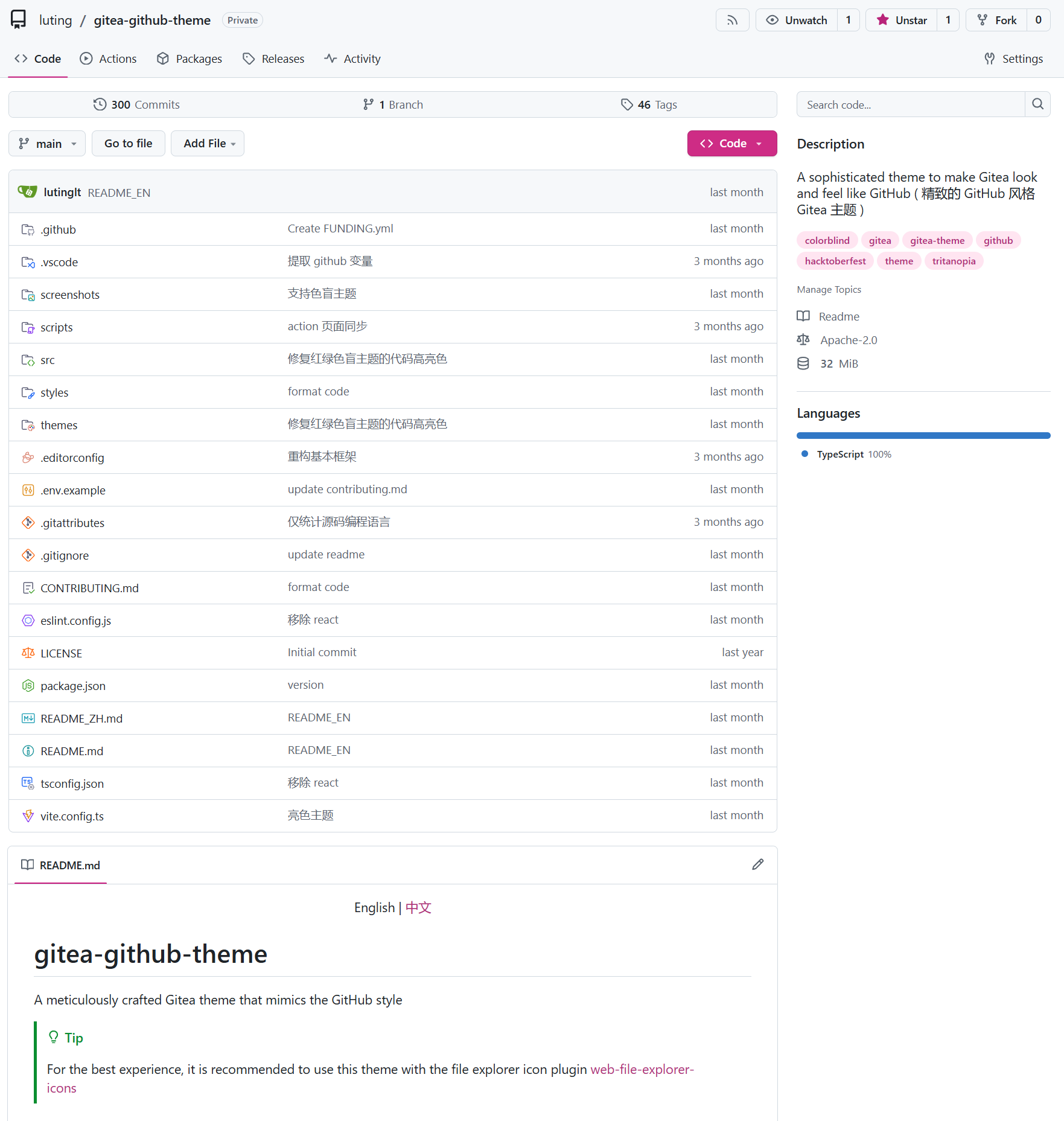 A Gitea theme that pursues GitHub style not only in colors but also in styling details.